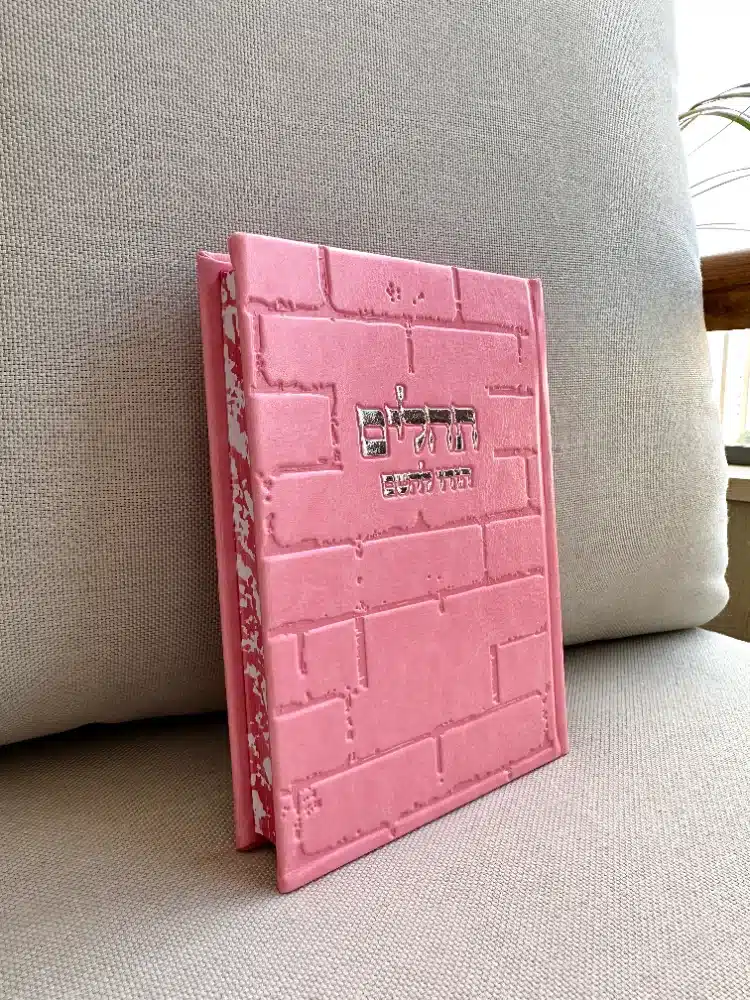 ספר תהילים דגם כותל , גוון ורוד עם כיתוב כסף , אורך 17 ס”מ , רוחב 12 ס,מ .