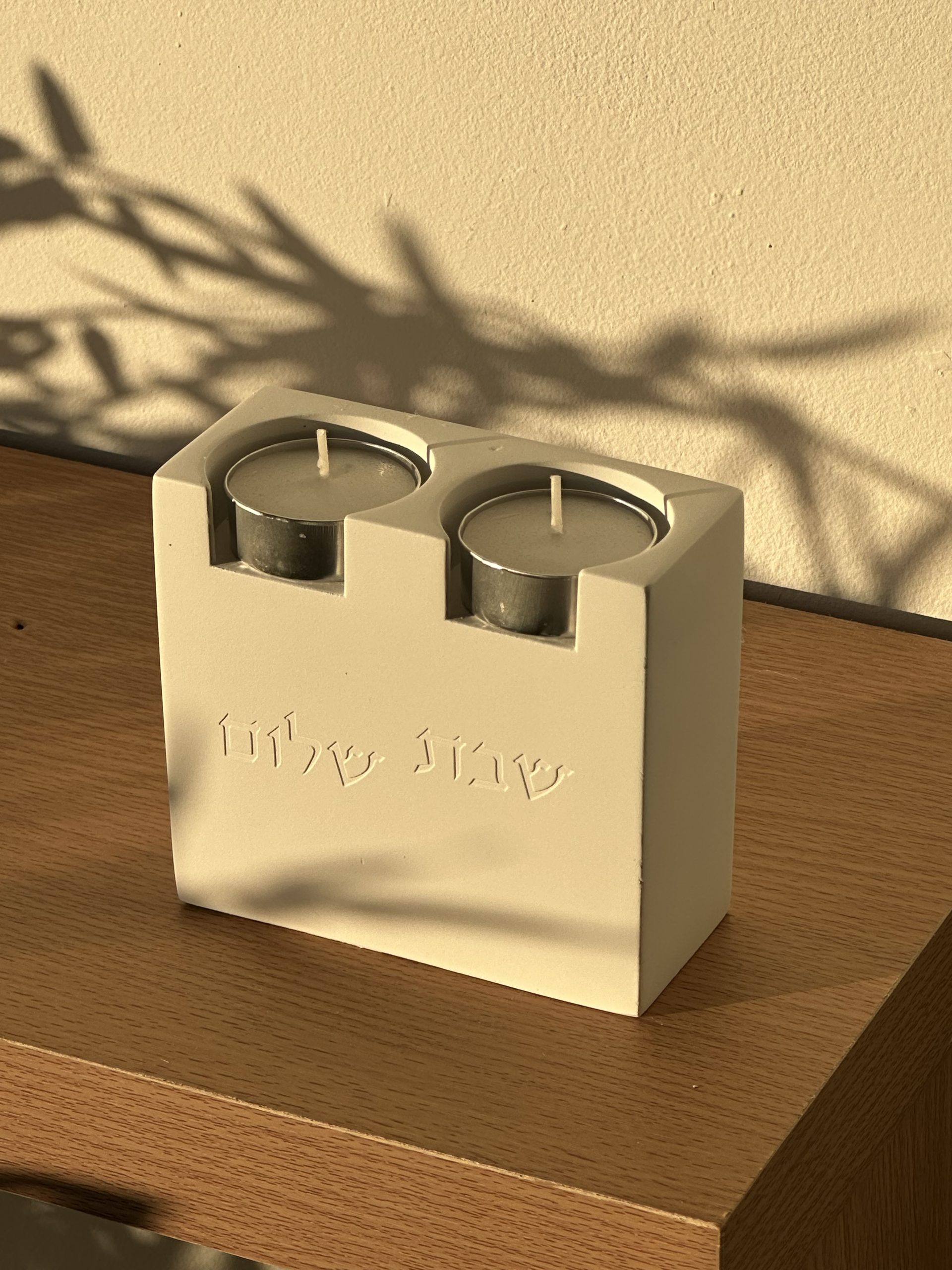 פמוטים לשבת מבטון , גוון לבן , גובה 10 ס”מ .