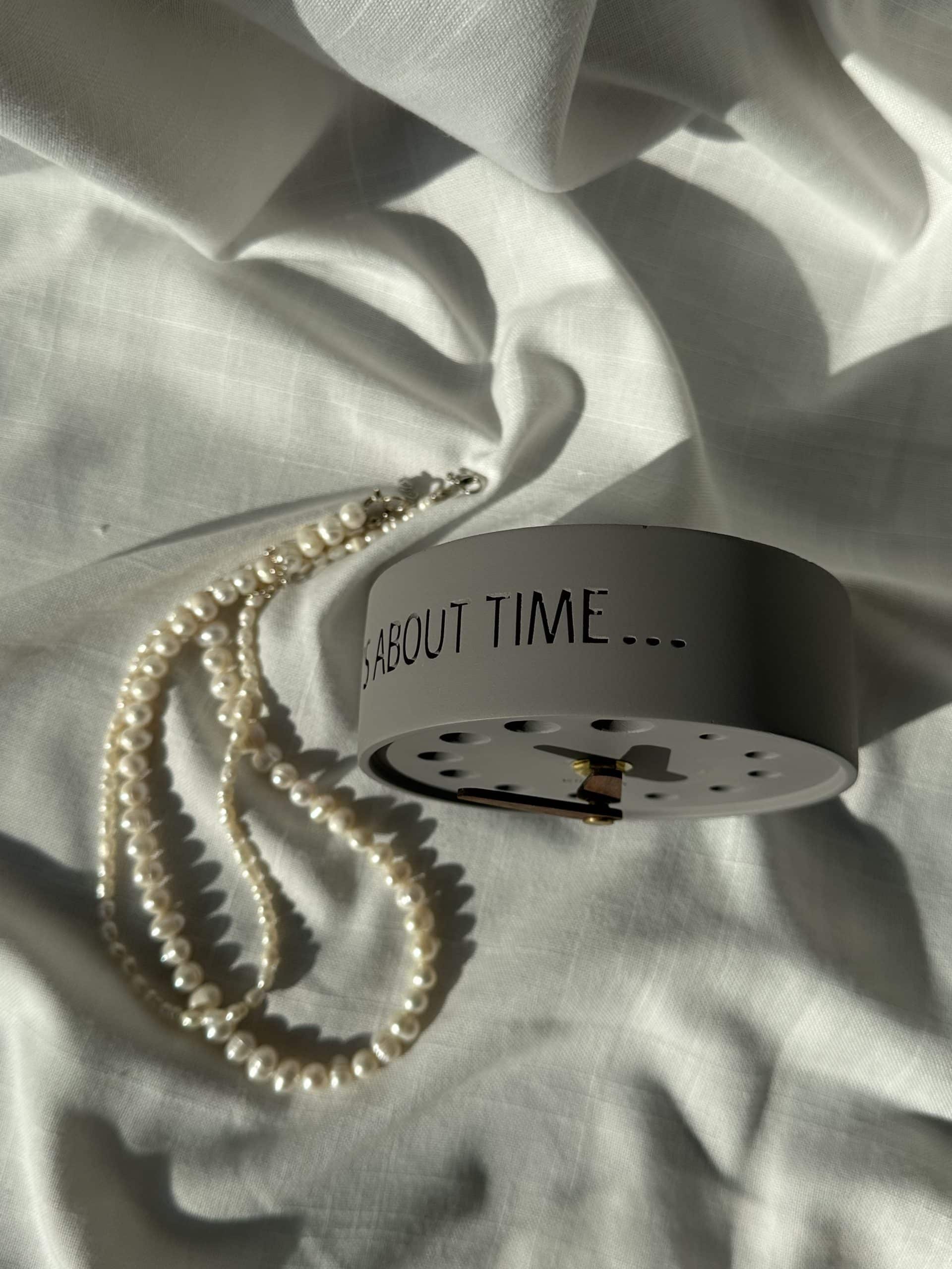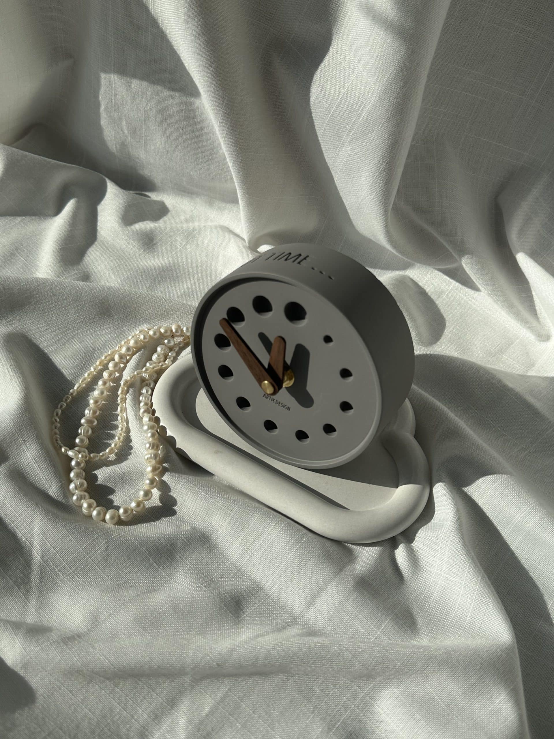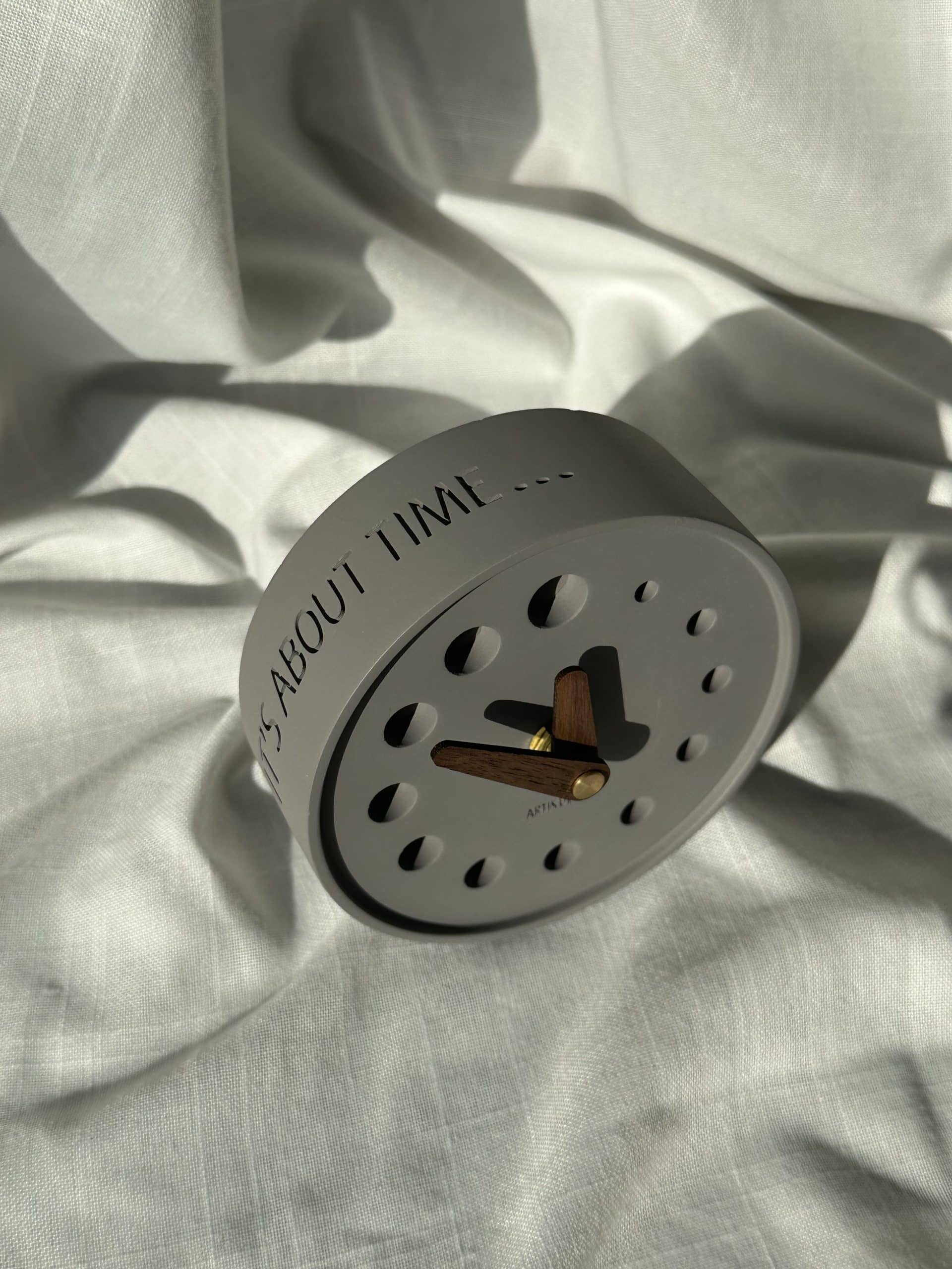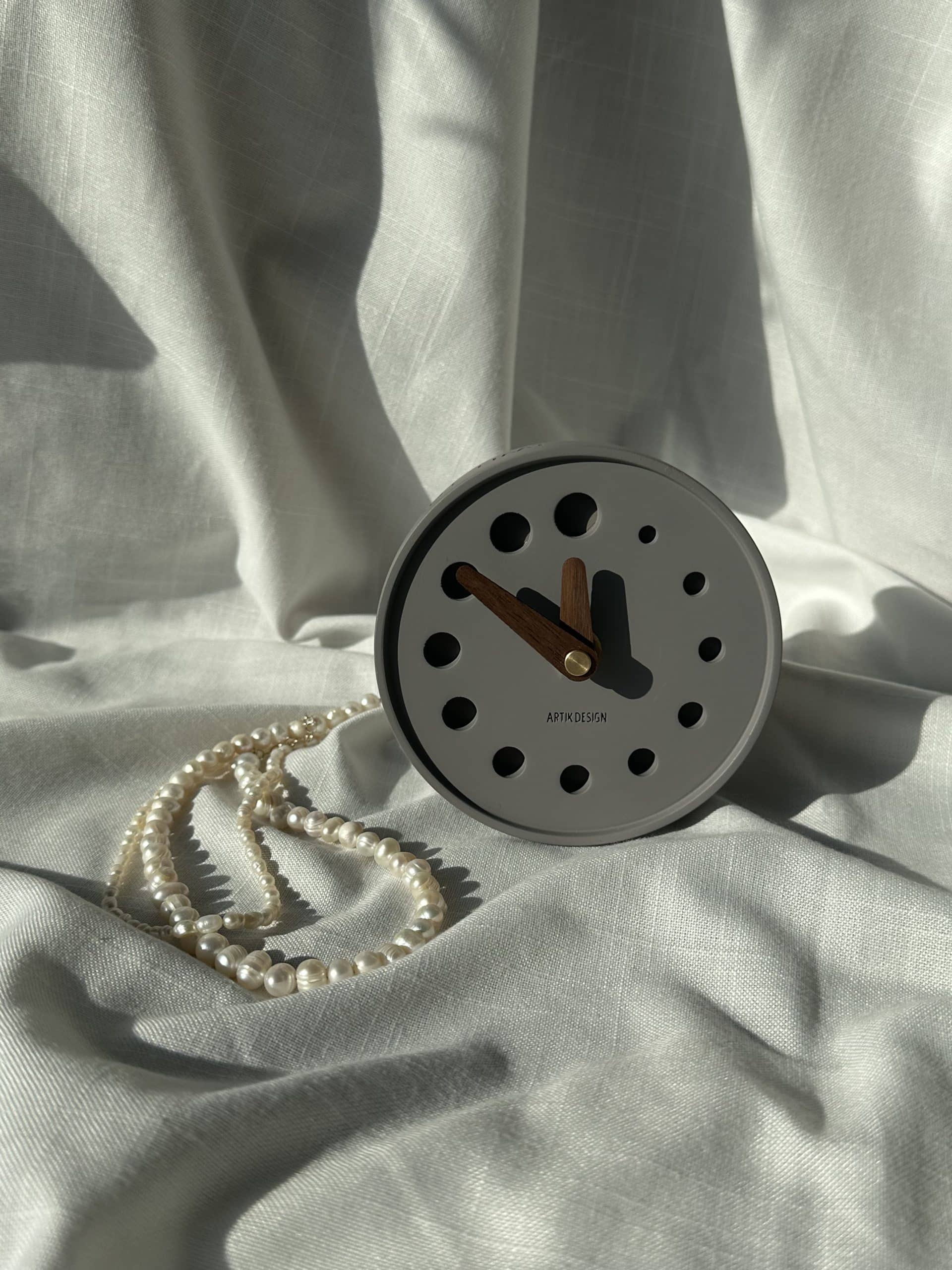 שעון שולחני עגול מבטון , גוון בטון , 11 ס”מ .